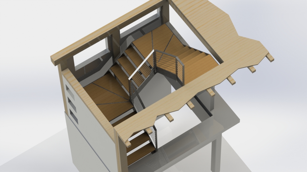 Escalier et garde corps métallique remplissage bois.